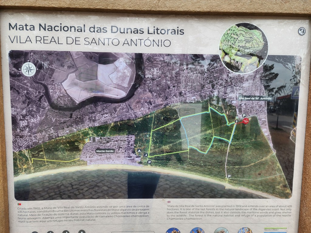 After a short drive from our accommodations, we parked in a Lidl supermarket lot near the main road in Vila Real de Santo António. From there we started walking south towards the park.