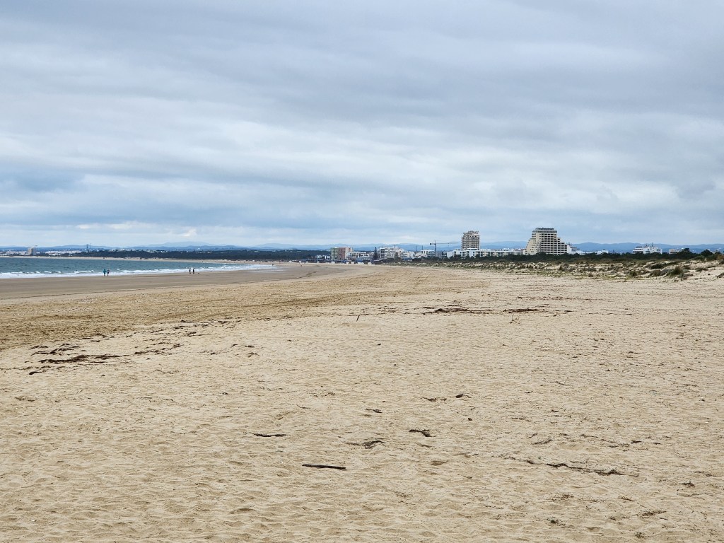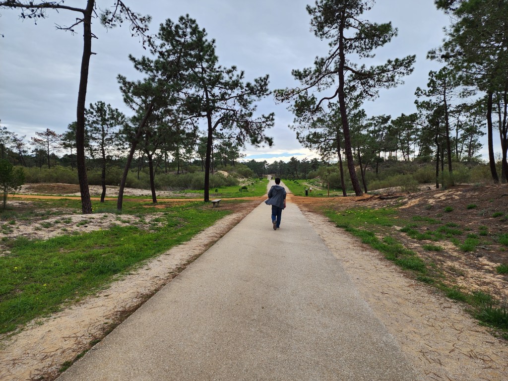 It didn’t take long before we were inside Mata National Reserve (Mata Nacional Das Dunas Litorais). It was an easy walk on the sidewalk before the trail opened up to a walking path. From there we made the 20 minute or so walk down to the beach.