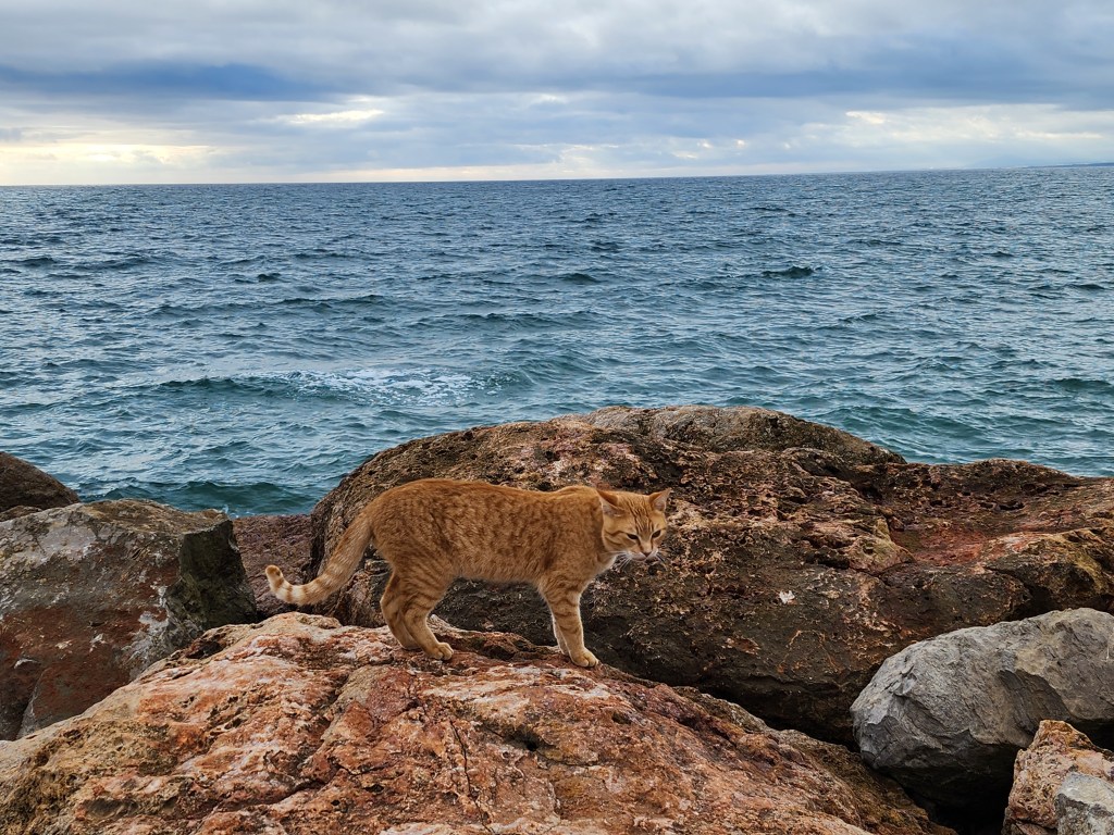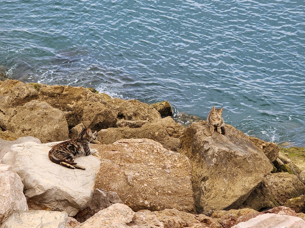 We guessed that local often fished from this spot, because there were cats around and nobody to feed them. However, there were simple box “houses” for the cats, indicating people were taking care of these strays.