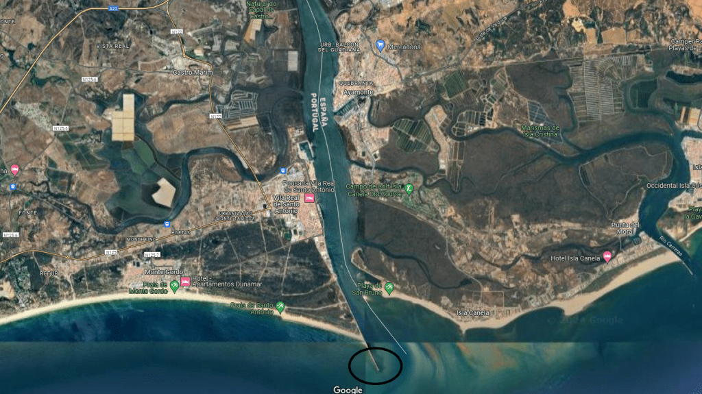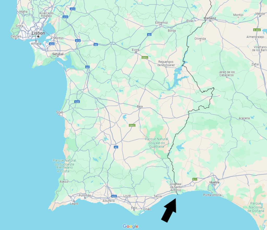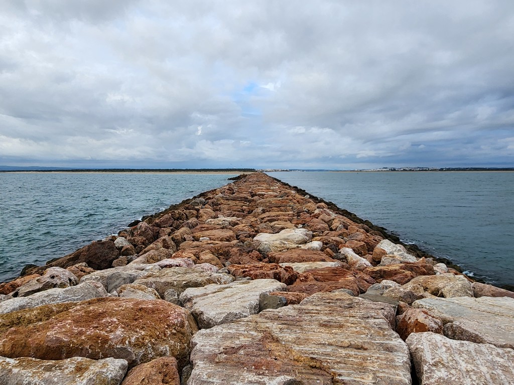 Our plan was to go to the long jetty at the end of the estuary that separates Portugal and Spain. After doing the southwest corner in Sagres a few days earlier, this would cover another corner of the country.