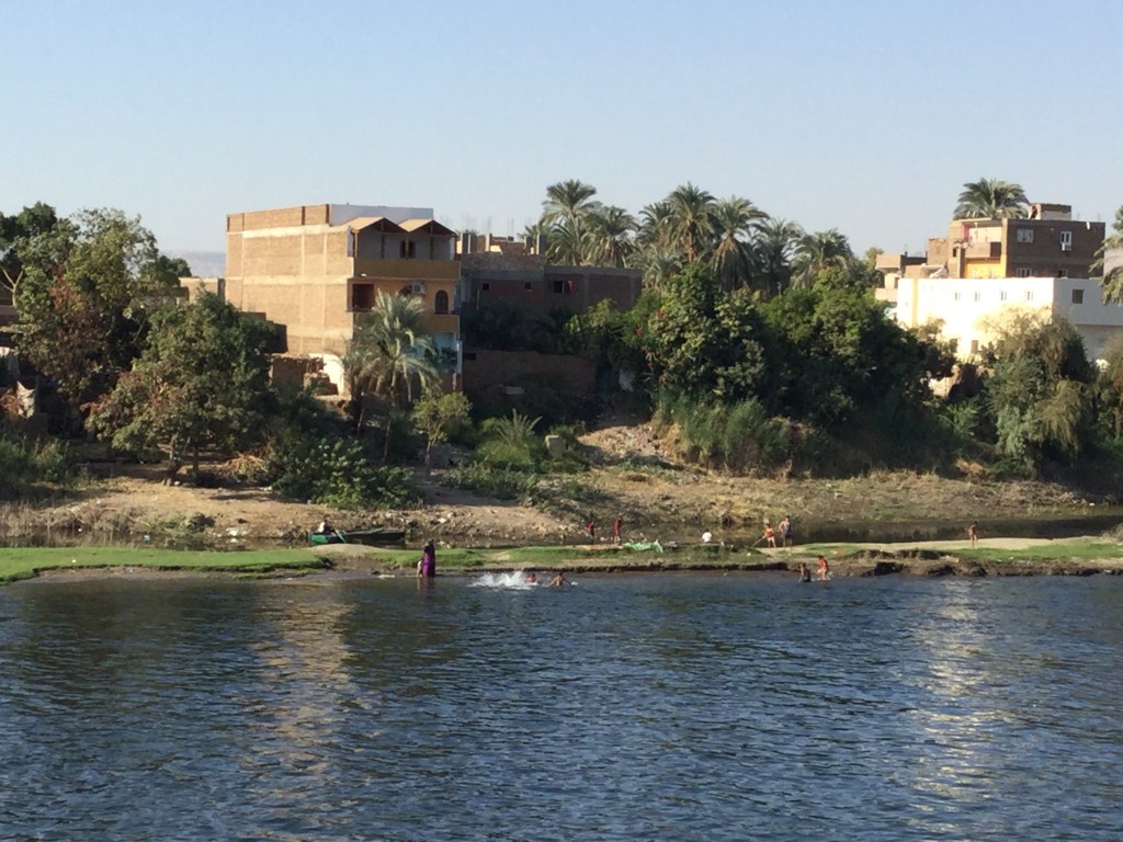 Our riverboat Le Fayan continued through the night and the next morning we went further south towards Edfu. We spent a lot of time on deck or looking out of our room as there was lots to see along the banks of the Nile. Other boats passed by, fishermen were busy at work, children were playing and women were washing clothes.