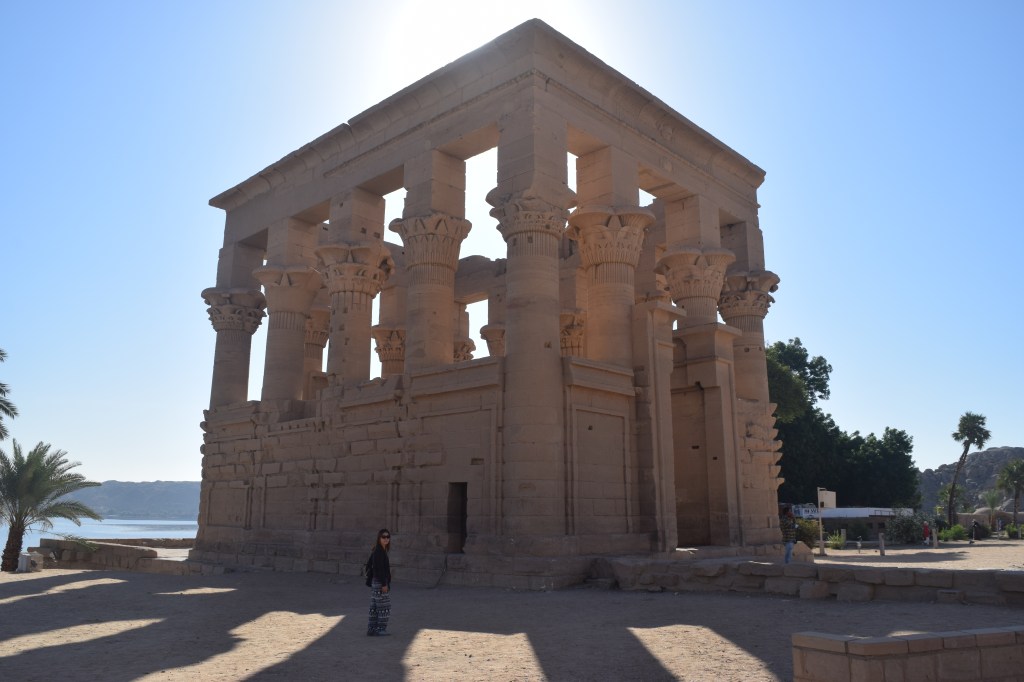Trajan’s Kiosk was a temple that was the original entrance to Philae from the Nile, but changed location when the temple was rebuilt. It is likely to have been built before the time of Trajan (possibly Augustus) but has images of Tajan as pharaoh inside.