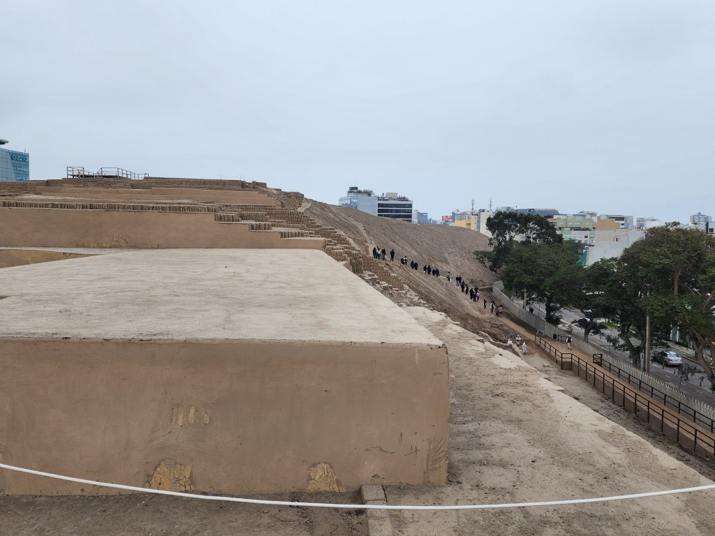 Just a short walk from our hotel and near the centre of Lima is a pre-Incan site called Huaca Pucllana. Built from seven staggered platforms made of adobe, the structure was intended to be the ceremonial and administrative center for Lima culture, a society which developed in the Peruvian Central Coast between the years of 200 AD and 700 AD.