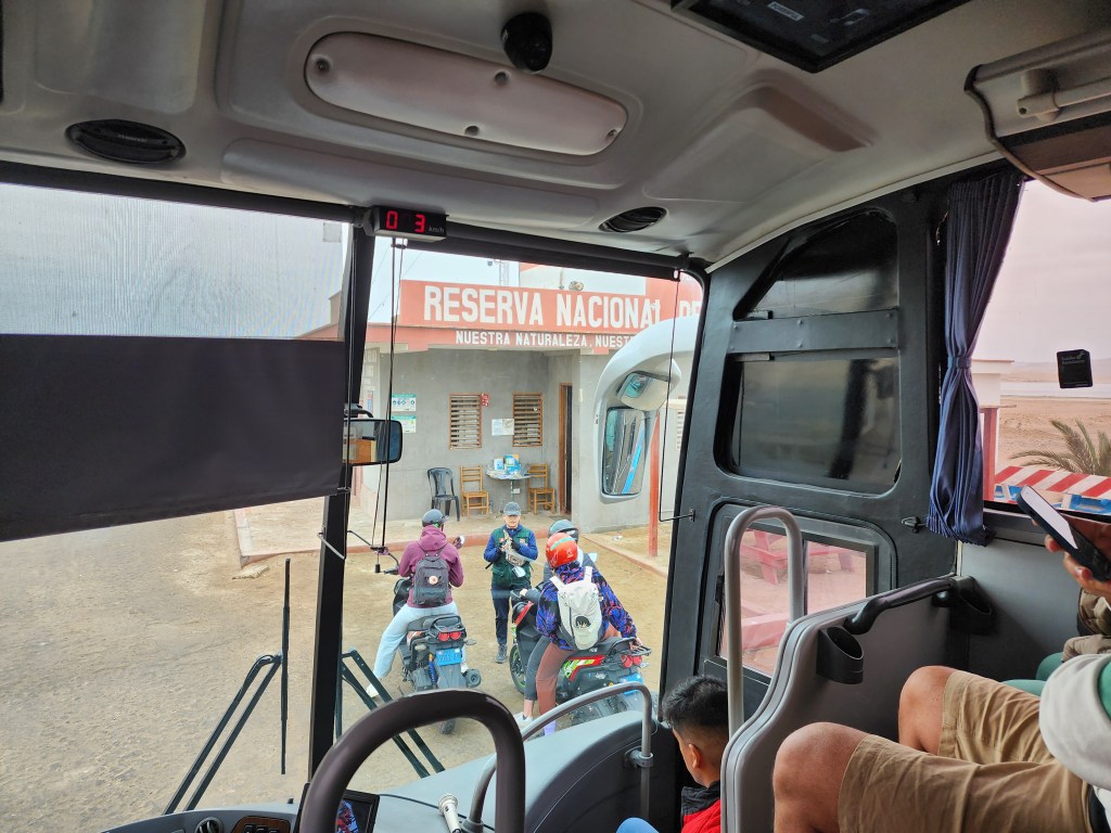 The Peru Hop tour combined the visit to the reserve with a departure towards our next destination in Huacachina, so we brought our bags to the meeting point a short distance from our hotel. There was a large gathering when we arrived. The bus arrived and was already mostly full, so it quickly filled and we had to wait for a second bus to arrive.