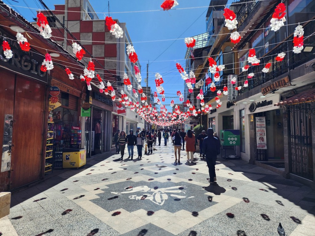 The downtown area had a lot of life in the evening, and was nice to walk around. We had dinner both nights on the main pedestrian walking area close to our hotel. At night it could get cold at higher elevations and we particularity felt it in Puno. Here we had to wear and extra layer or two.