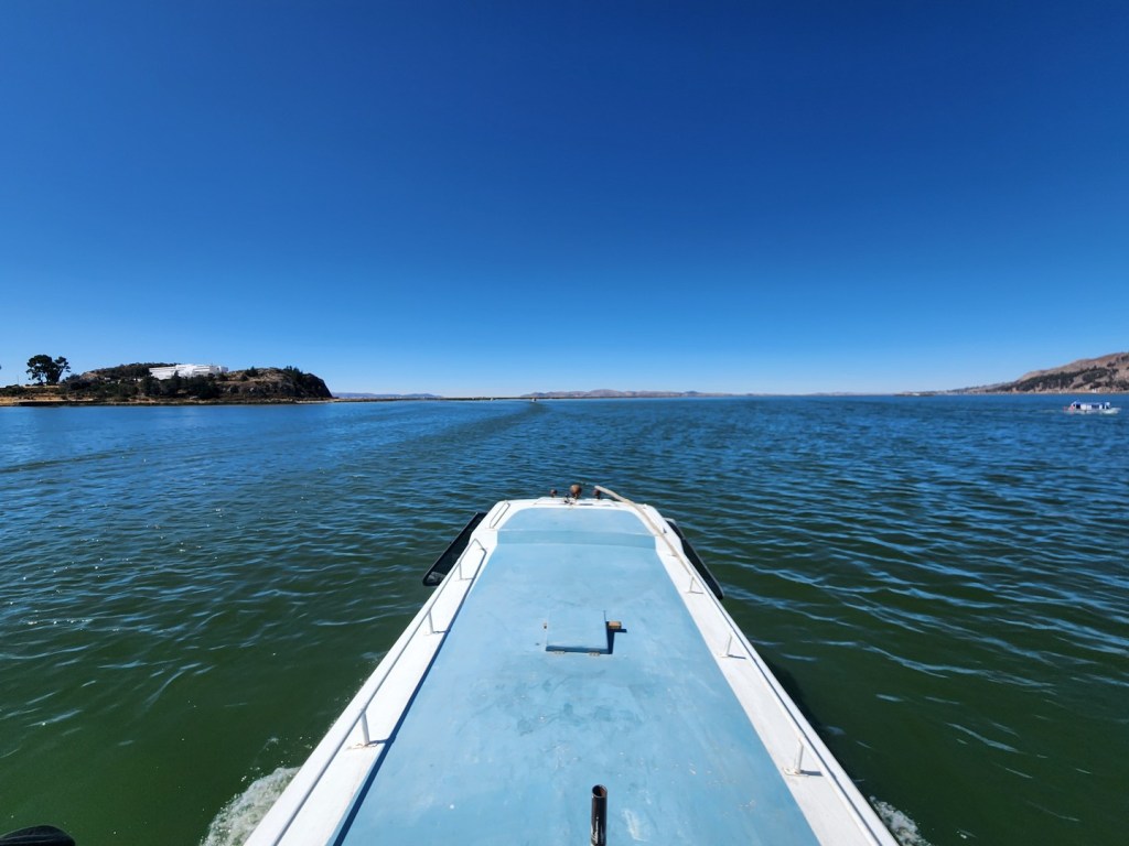 After another short stop on another of the floating islands, we started to head back the way we had come. Although it wasn’t too hot, the direct sun at high altitude felt strong after a few hours on the lake.
