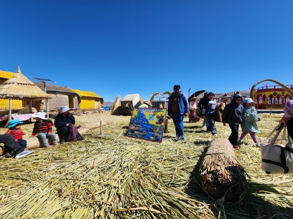 The larger islands house about ten families, while smaller ones, only about thirty meters wide, house only two or three families. Each island lasts about 25 years. After 25 years, water seeps through the reeds and the inhabitants build a new island and let the old one sink to the bottom of the lake.