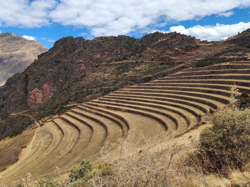 One of Pisac’s most striking features is its series of large agricultural terraces that cascade down the mountainside. These terraces: