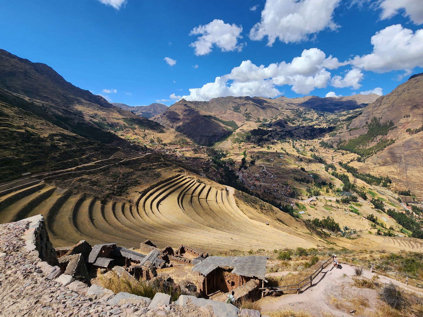 One of Pisac’s most striking features is its series of large agricultural terraces that cascade down the mountainside. These terraces: