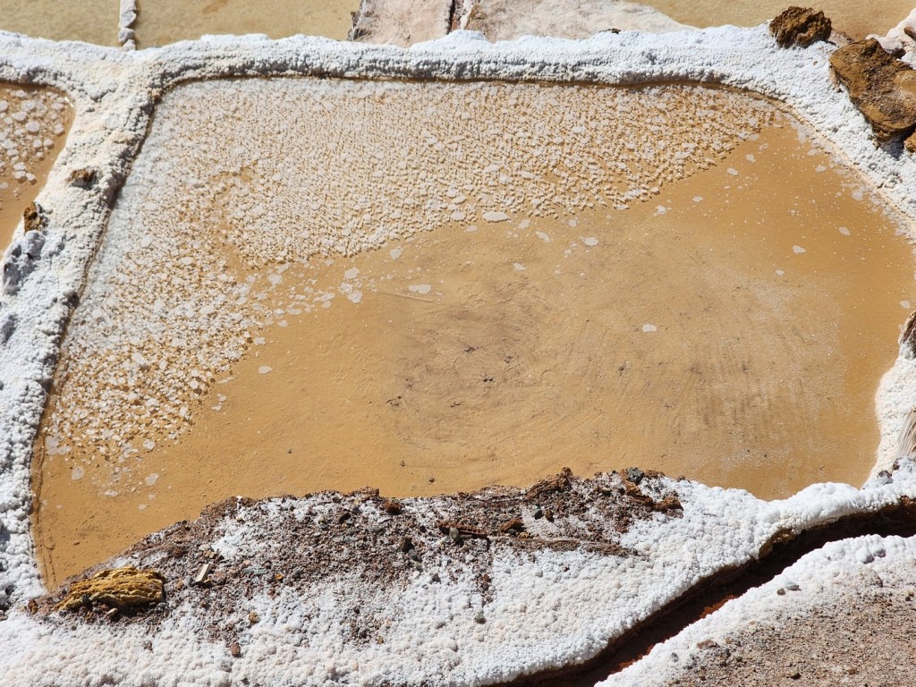 The sight of the huge swath of white that suddenly appeared on our right as we passed over the valley was a surprise. It dominated the valley, and after we stopped we looked down at the many irregularly-shaped geometric pools containing salt. More impressive was the fact that this salt had been continuously mined from Inca times.