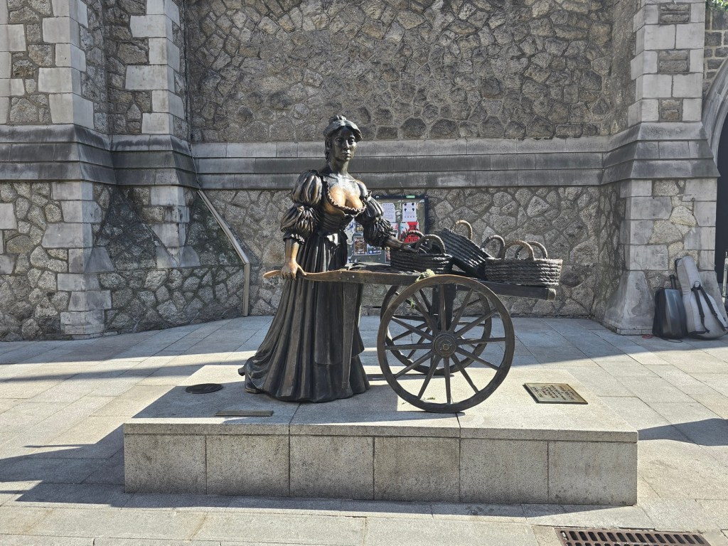 Back outside again, we passed one of the most popular sights in Dublin: the statue of Molly Malone. She is the subject of the famous song Cockles and Mussels, and drew the tourists around.