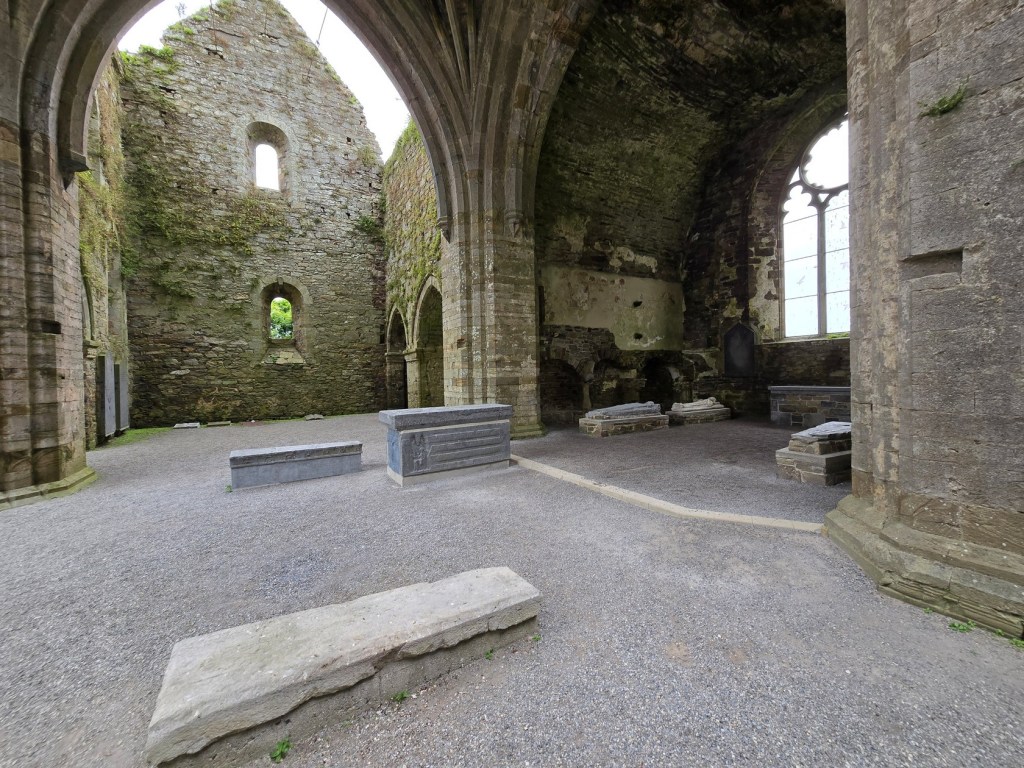 From Carlow, we continued our trip southward towards the Irish coast. We made one stop along the way, which was Jerpoint Abbey. The abbey is located 2.5 km southwest of Thomastown on the R448 regional road.
