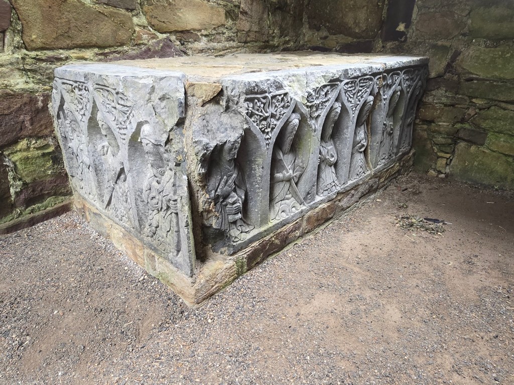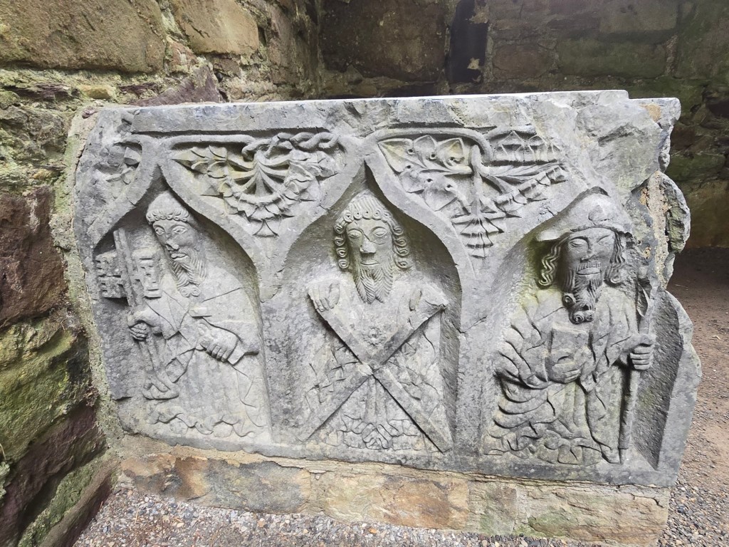 The Cistercian founder of the abbey, Bishop Felix O’Dullany, is buried at Jerpoint. His grave became a place of pilgrimage and devotees would take soil from his grave for its miraculous powers, especially for healing sore eyes.