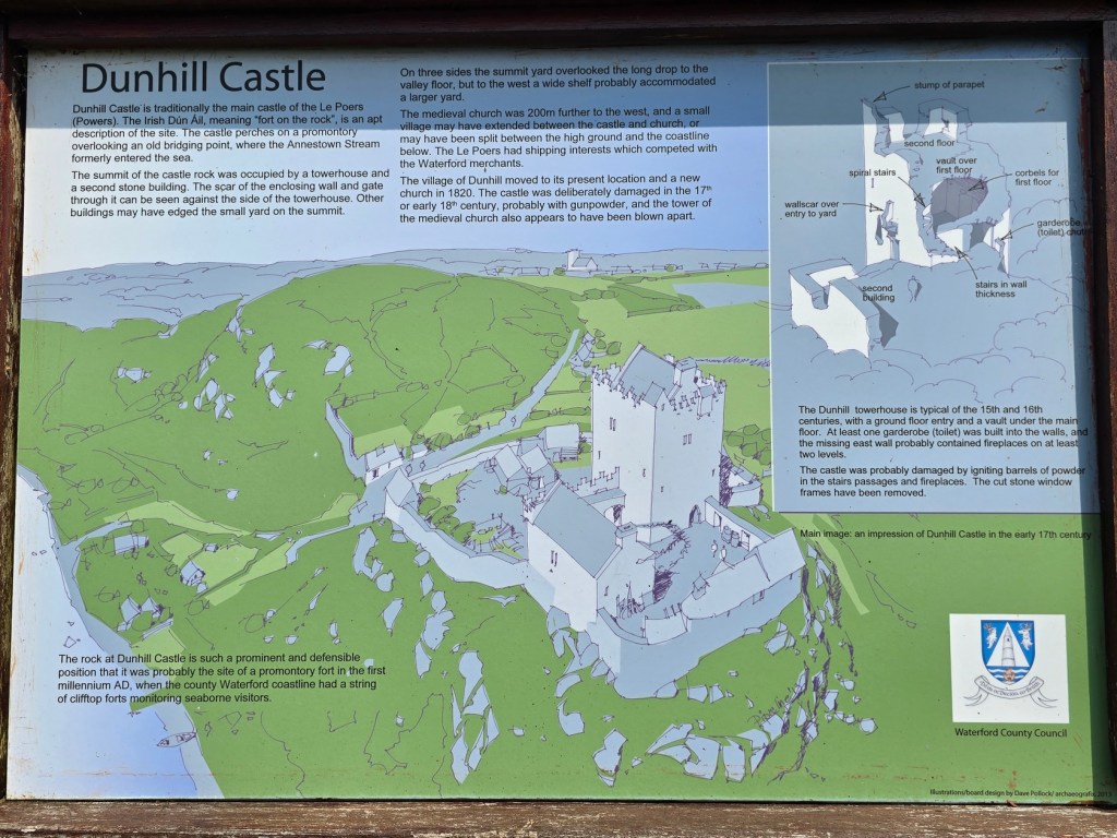 Dunhill Castle is a centrepiece along the lovely Anne Valley Walk. The Ann Valley Walk was established by the local community, and the walk stretches from the village of Dunhill to Annestown Beach. Unfortunately we didn’t have time to explore the walk, and had to take a rain check on that one.