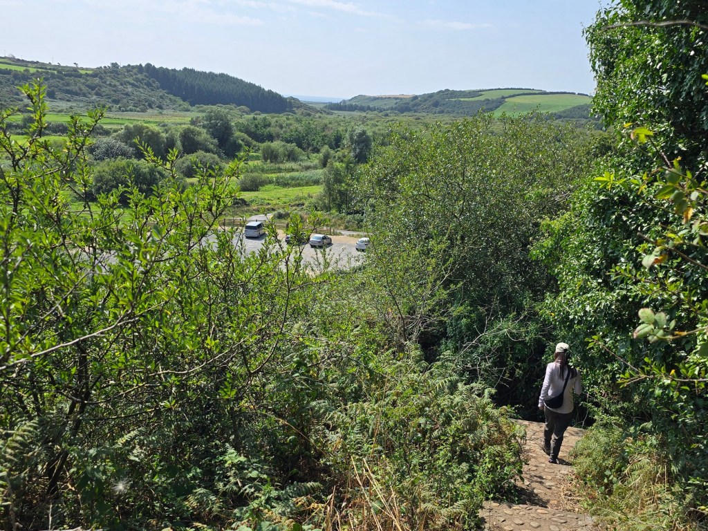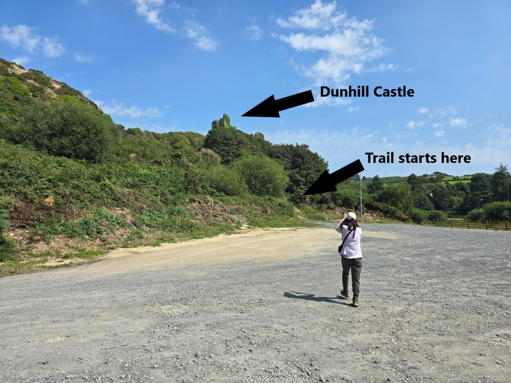 After driving further west, we briefly went north to check out Dunhill Castle. The drive went through some narrow country roads, but fortunately there were few drivers on them. We soon reached the parking lot and looked for the path up to the castle.