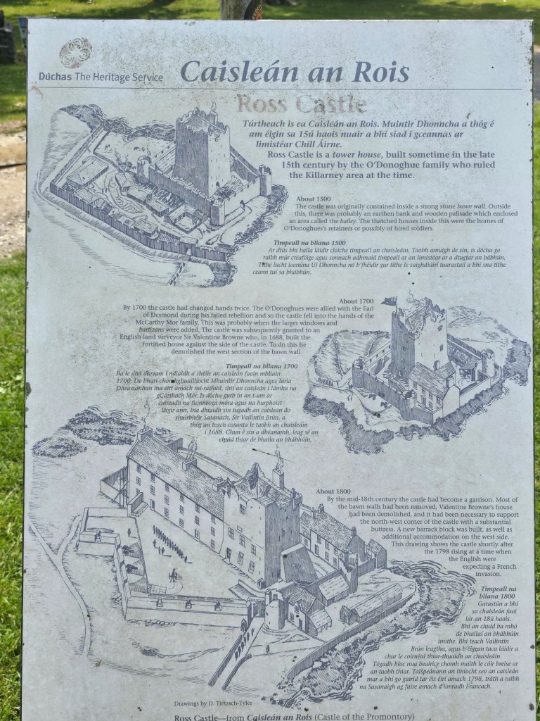 We reached Ross Castle by mid-afternoon. It was busy and parking was limited but fortunately there was overflow parking available. Unfortunately, when we went inside there was a long wait for the next tour. We also wanted to visited Muckross Abbey that afternoon so we decided to just check out the exterior of Ross Castle as it was free to explore without a tour.