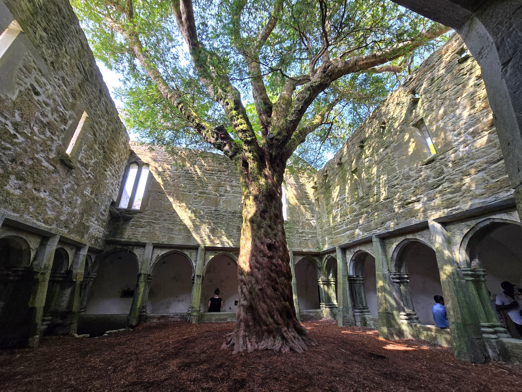 The cloister is the most striking part of the abbey. The yew tree growing at its centre is traditionally believed to be as old as the abbey itself and symbolizes eternity and renewal.