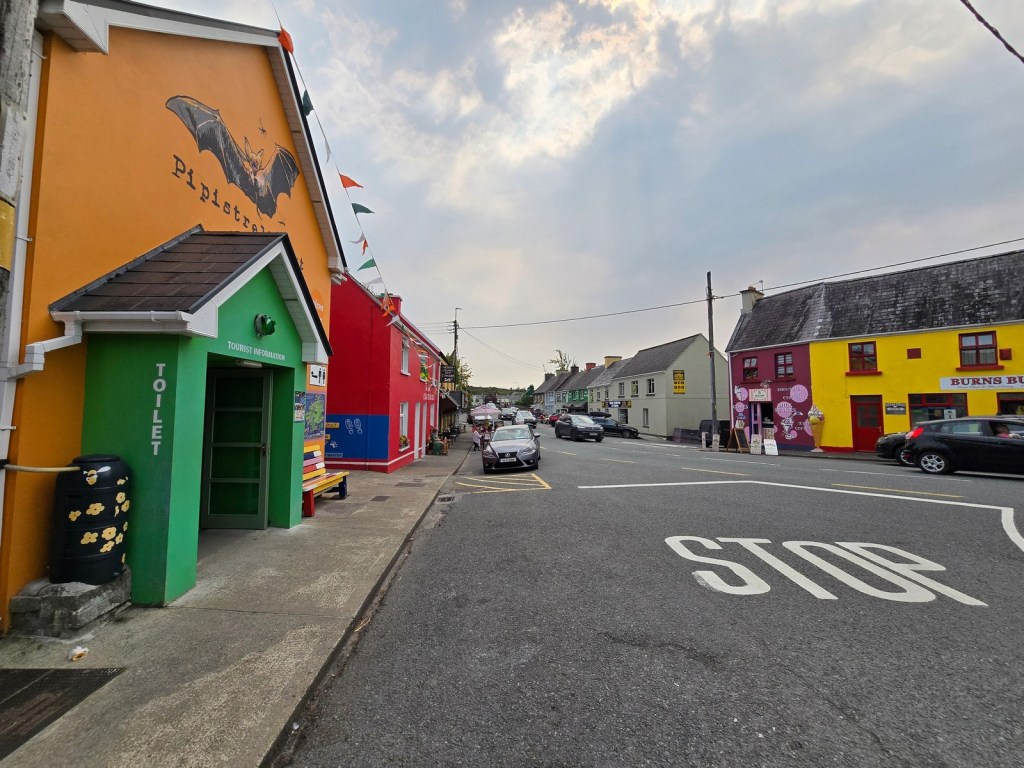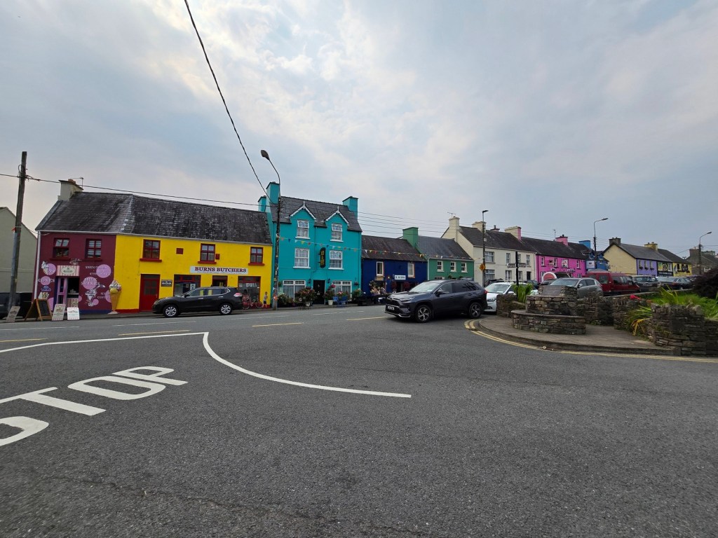 Shortly into the drive we passed through the town of Sneem, known for its brightly covered buildings. It was also a great spot to visit if you need a free and clean public toilet.
