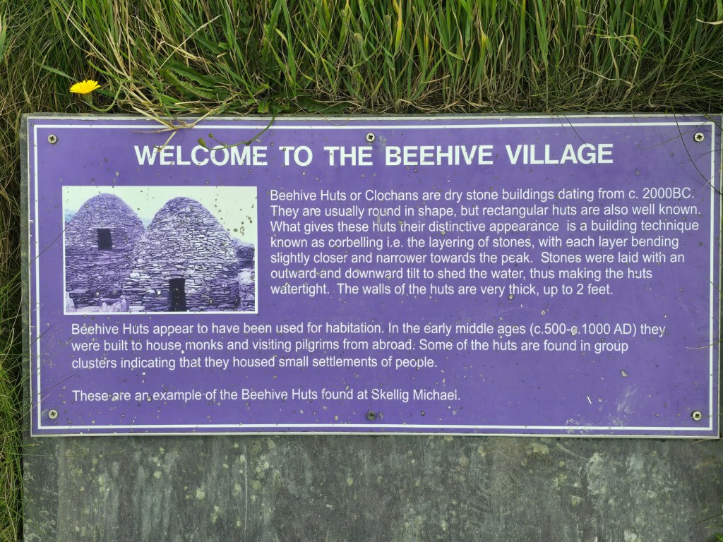 Close to the cliffs are some reproductions of the beehive huts that monks used to live in. On nearby Skellig Island, up to a dozen monks would live in them. It’s hard to imagine how life would have been for them in the middle ages with only occasional visitors to the isolated island.