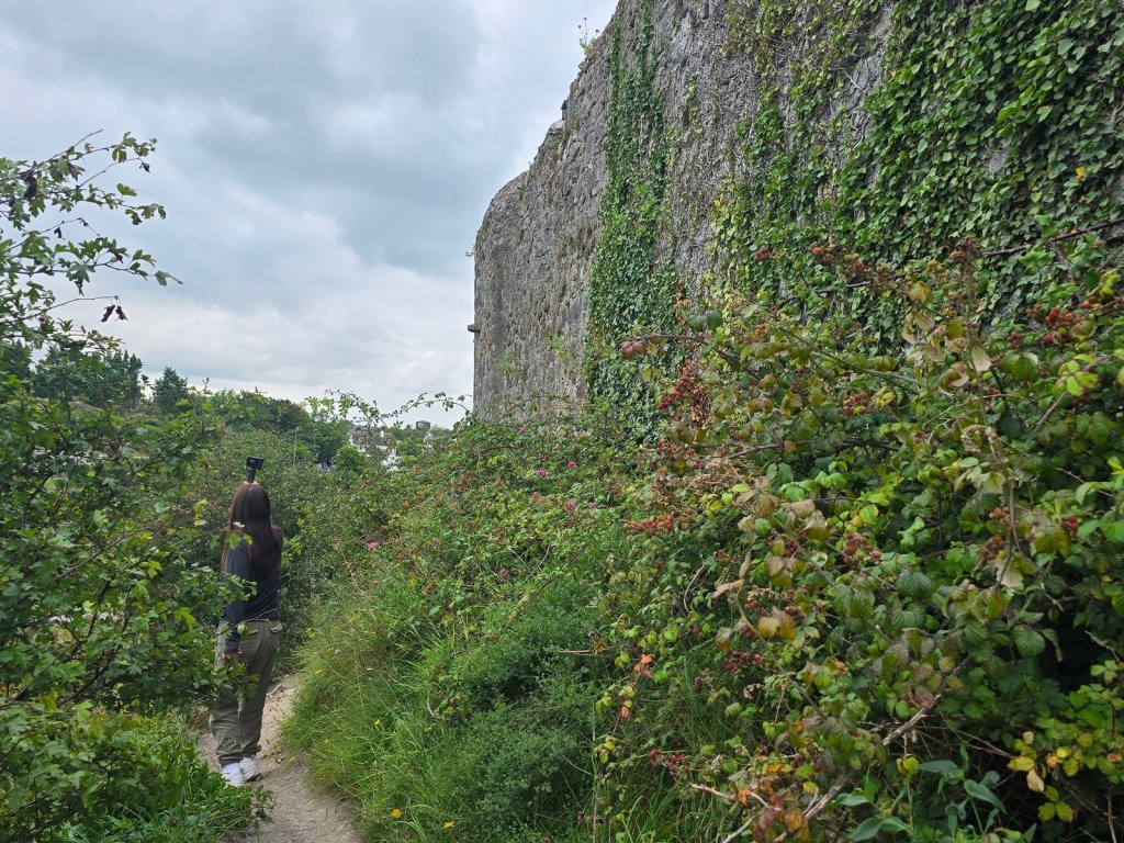 Since we couldn’t enter the castle we decided to walk around it. There is a trail that winds right around the castle. It’s a bit hilly and uneven, but not difficult to manage. Just watch out for bees!