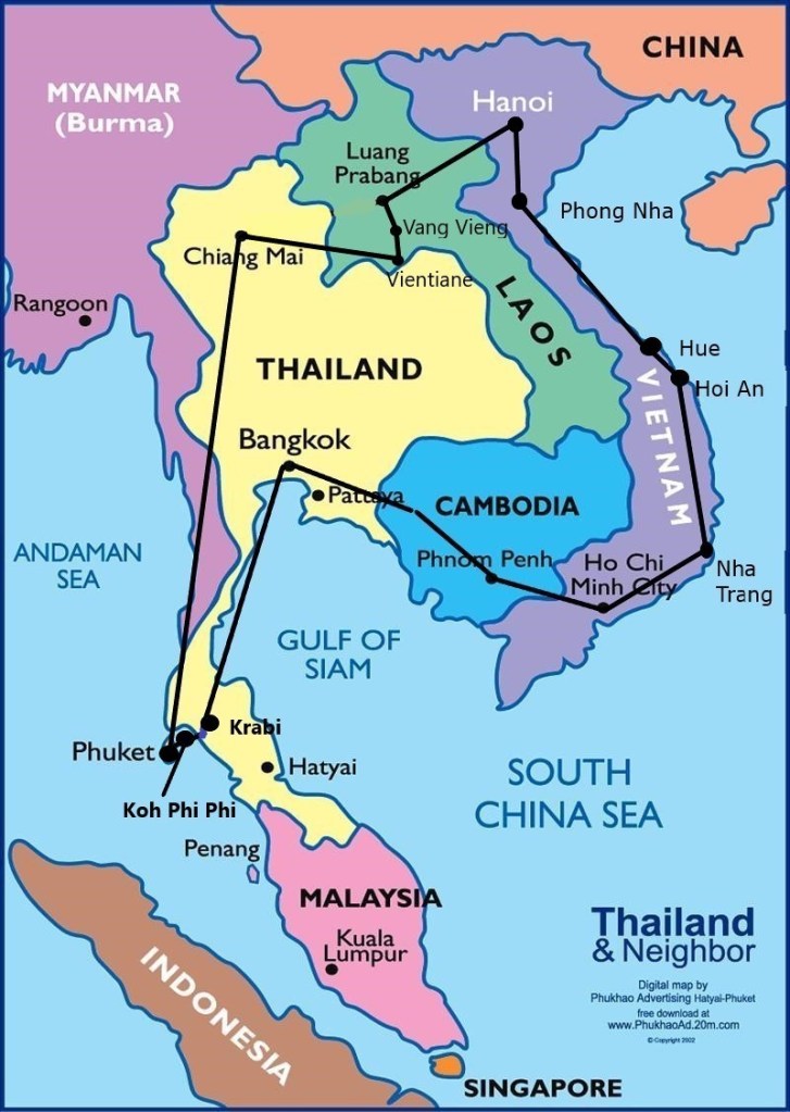 This was the approximate route we took going through Southeast Asia from January 26th to March 20th. We began in Bangkok and spent four nights there before flying to Siem Reap, Cambodia to see Angkor Wat.