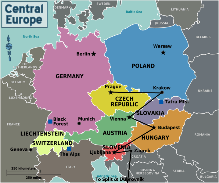 In the summer of 2019 we did a trip through Central and Western Europe. We started in Prague, stayed for a week and then took a train to Krakow. After spending three nights there we moved on to Vienna by train. We spend four nights in Vienna before taking the train to Budapest. After three nights we moved on to Ljubljana in Slovenia where we stayed for four nights.